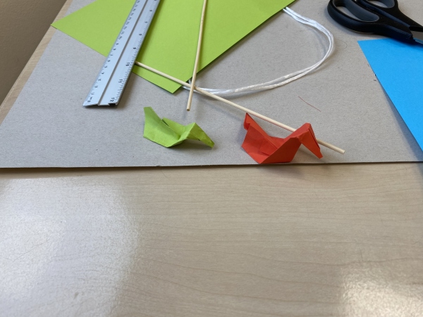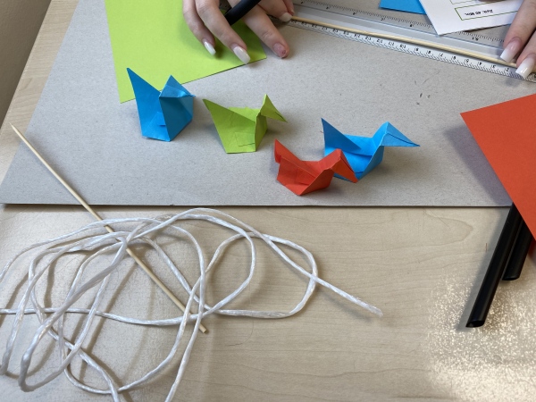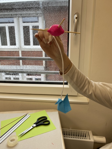 Beobachtet von Frau Goda, Frau Stolecki und Herrn Rudys entstanden so nach Vorgaben 3-D-Geburtstagskarten, Mobiles, Werbeplakate und Murmelbahnen.