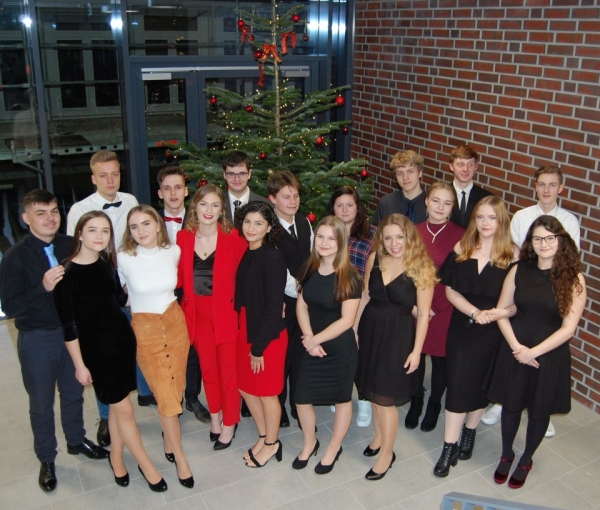 Jeweils eine Klasse sorgte für Service und Catering, die andere war Gast eines förmlichen Dinners. Bei der Simulation eines Betriebsfestes zu einem feierlichen Anlass zeigten die 10.-Klässler, dass sie sich auch auf dem gesellschaftlichen Parkett sicher bewegen. Vor dem eigentlichen Event wurden gemeinsam Krawatten gebunden, jeder übernahm während des Dinners eine zufällig ausgeloste Rolle, vom Halten einer Tischrede bis hin zum Auftrag, zu bestimmten Themen Gespräche zu führen.