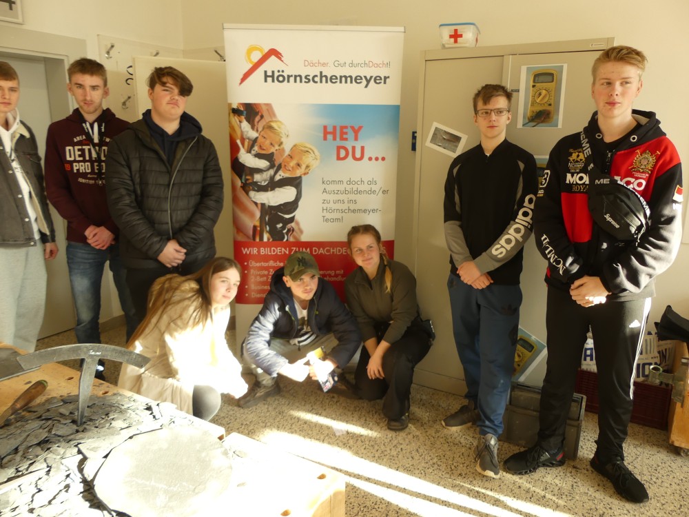 Auszubildende unserer Kooperationspartner kamen in die Hauptschule, um den Schülerinnen und Schülern der Klassen 8 und 9 von ihren Ausbildungsberufen und Betrieben zu erzählen. Zu unseren Gästen gehörten die Firmen Dallmann, Haustechnik Strehl, Maschinenbau Feik, Möbel Hardeck, das Seniorenheim St. Martinus und zum ersten Mal der Dachdecker-Betrieb Hörnschemeyer aus Wallenhorst.