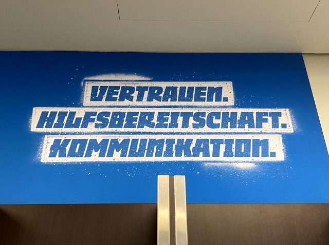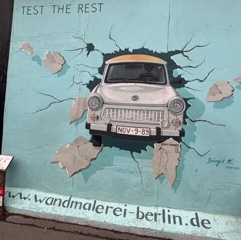 Nach einem erneuten Spaziergang entlang der East Side Gallery, machten wir uns auf den Weg zur Friedrichstraße. Dort informierten wir uns über den Mauerbau und machten – wie viele andere Toursiten auch – einen Halt am Checkpoint Charly. Mit reichlich Schokolade versorgt, ging es dann zum Olympiastadion, wo wir eine Führung bekamen. Nach dem Olympiastadion machten wir am Hauptbahnhof eine kurze Pause, um anschließend im Futurium, dem „Haus der Zukünfte“ interaktiv in einer möglichen Zukunft unterwegs zu sein und wissenschaftliche Experimente zu machen.