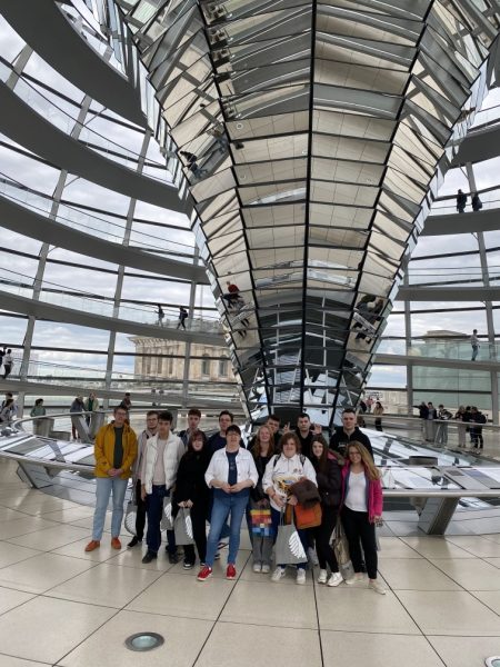 Und so ging es auch die restlichen Tage weiter. Wir waren im Spionagemuseum, besuchten den Tränenpalast, sahen die erste Litfaßsäule, stoppten am Checkpoint Charlie, waren betroffen im Dokumentationszentrum „Topographie des Terrors“, schlenderten über den Hackeschen Markt, besuchten den Bundestag und Frau Hennig, eine Abgeordnete aus Bramsche, nahmen an einer Plenarsitzung teil, gruselten uns im Dungeon, tanzten in der Disco-Telefonzelle, kauften Andenken, bestaunten Waren im KaDeWe und, und, und…