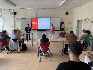 Die Schülerinnen und Schüler wurden von zwei Auszubildenden der Kreissparkasse Bersenbrück in den Ablauf des Online-Wettbewerbs „Planspiel Börse“ eingewiesen. Die Schülerinnen und Schüler registrierten sich, um dann in Teams von zwei bis vier Teilnehmenden, mit einem virtuellen Startkapital Aktien zu kaufen, sich an Fonds zu beteiligen und den Verlauf ihrer Wertpapiere zu verfolgen und dann gezielt zu handeln.