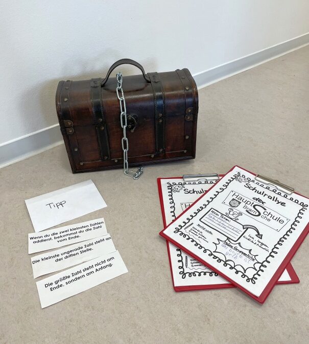 Den Abschluss bildete eine Rallye durch das Schulgebäude. Dabei sammelten die Gruppen an verschiedenen Stationen Ziffern und Hinweise, um schließlich gemeinsam den Code eines Zahlenschlosses zu knacken und damit an den Schatz zu gelangen. Die Kinder waren mit viel Neugier, Freude und großem Interesse dabei und erkundeten die Schule mit sichtlicher Begeisterung
